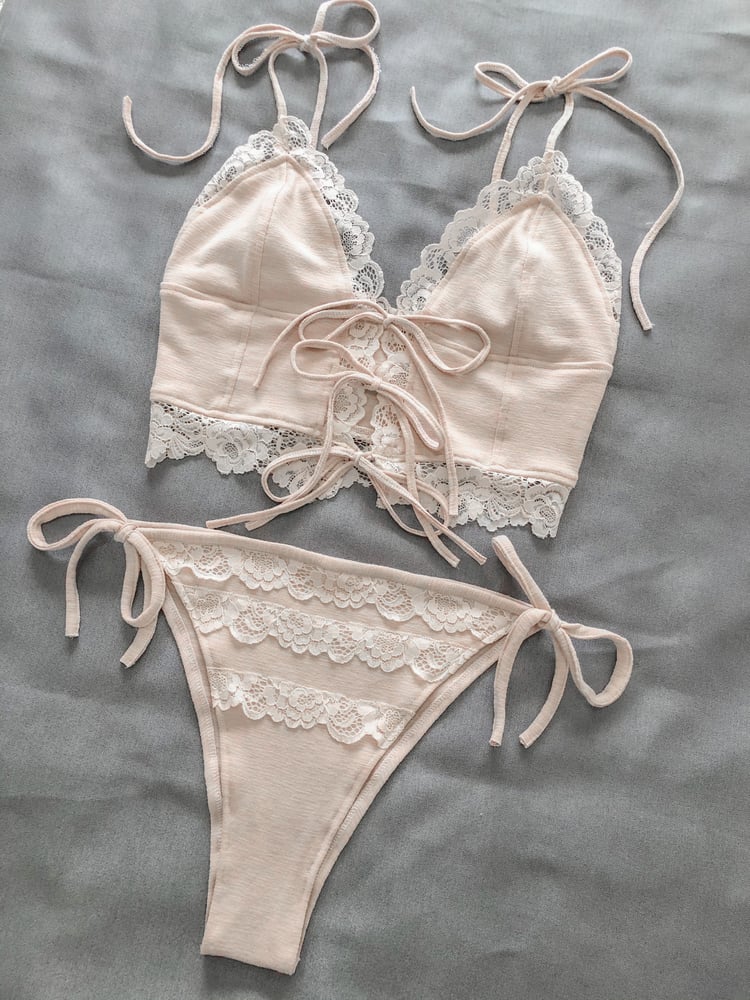 You’ll love this high waisted jersey knit panty in a subtle ribbed texture, with delicate scalloped embroidery trim and straps ties at the sides.